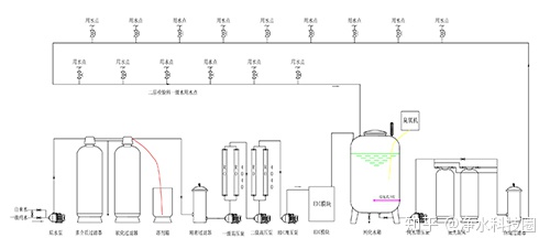 人民医院中央分质用水系统中检验科制水设备供水量为500L/H。检验科室设11个用水点。